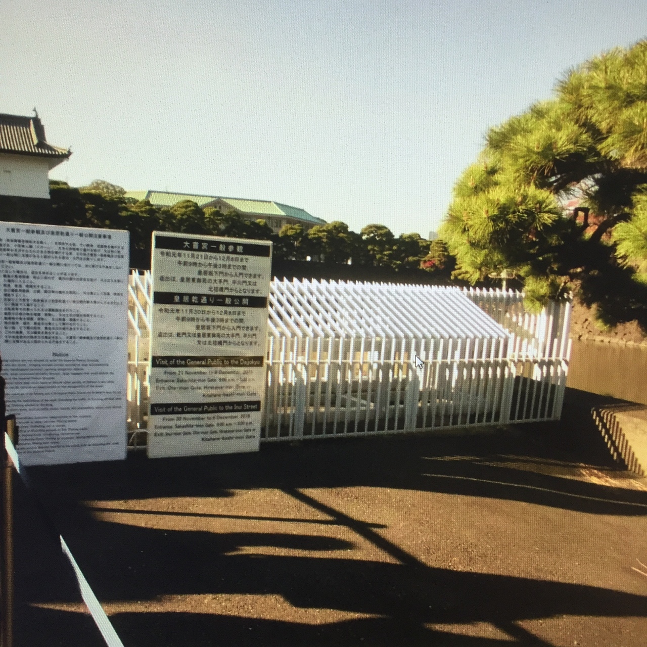 大嘗祭の公開の期間に皇居へ行きました。平日にもかかわらず、たくさんの人が広場に列を作っていて、手荷物検査なども広場にテントを置いて行っていました。一般参賀など混雑する行事の時には行ったことがありませんでしたが、あれだけ広ければたくさんの人が訪れても収容できるのも納得です。