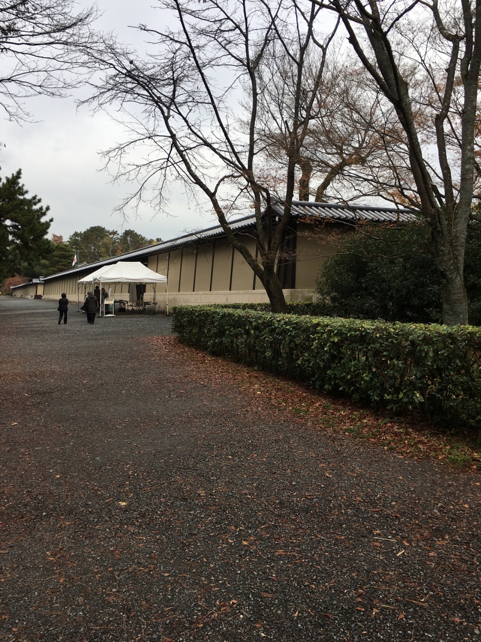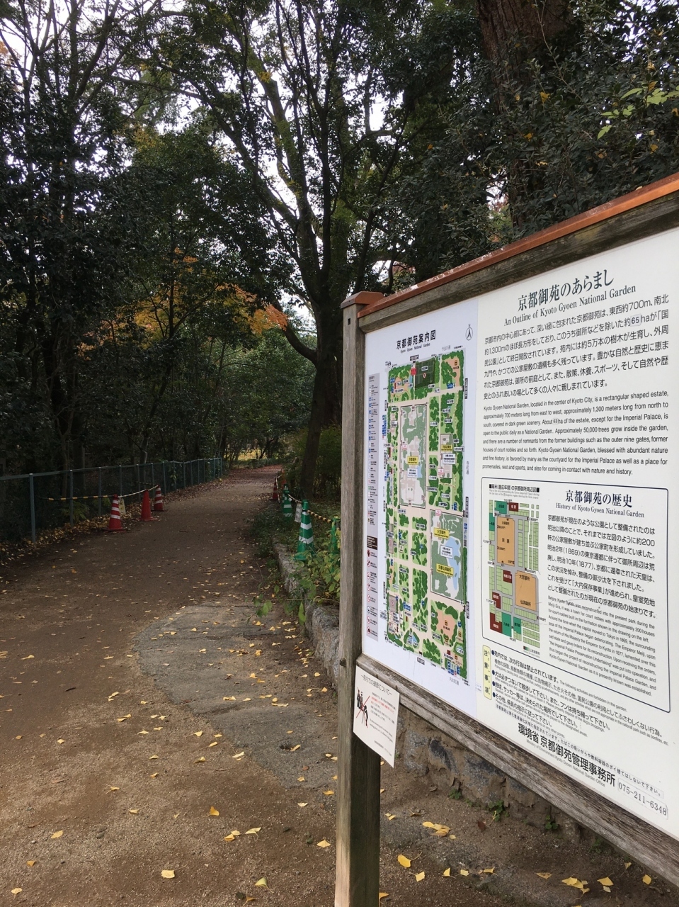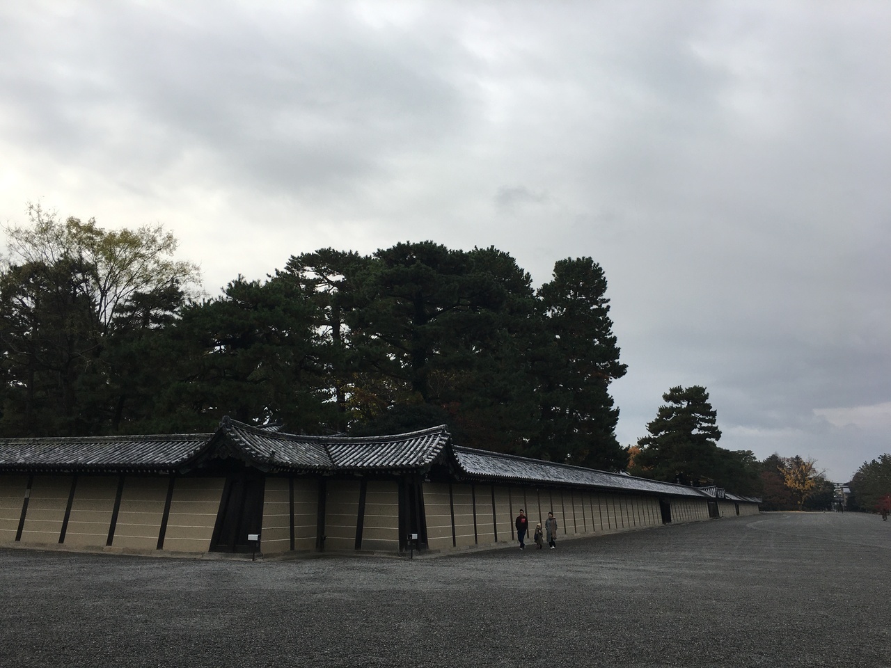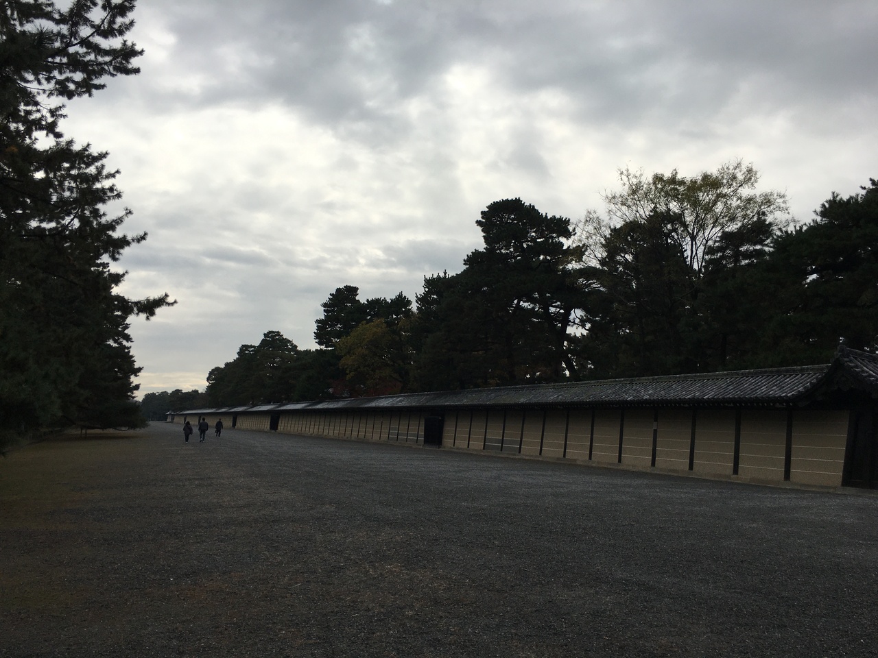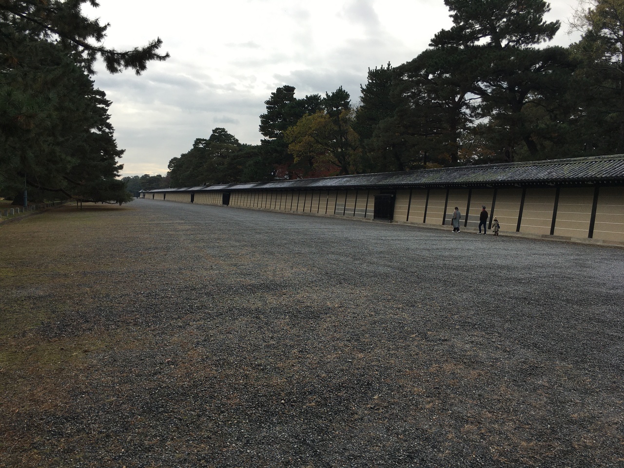 長方形の御所の周りを歩きました。東京の皇居に雰囲気が似ていて、砂利道で、木々が生えいくつかの出入口の門がありました。巨大な庭園といった感じでしたが、広すぎて御苑の半分も行ききれなかったです。人が多かったですが広いので、多いとは感じませんでした。