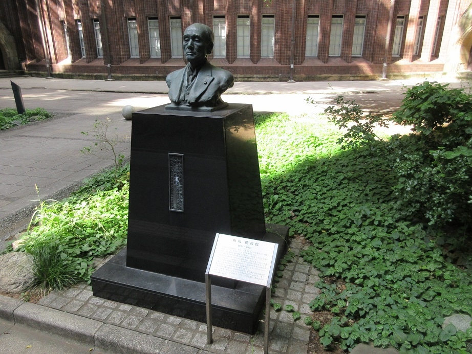 東京大学を代表する建築の一つである安田講堂の裏側に、寂しくポツンと置かれた胸像があり近づいてみると「山川健次郎像」とのこと。会津若松の白虎隊のメンバーであったそうで、明治期には物理学者として名を馳せ、東京大学の総長を務めたとのことです。立ち止まって見る人もほとんどいませんが、今は静かに学びやに集う若者らを見守っているような慈悲深い顔が印象的でした。