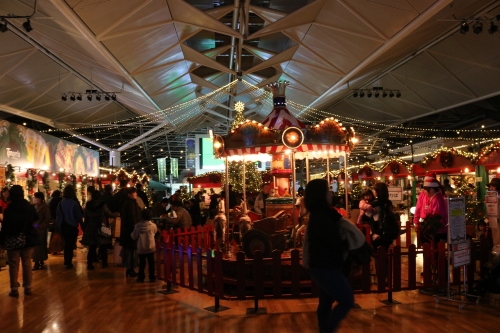 スカイデッキのイルミネーションは年々寂しくなっていますが、今年は4階でクリスマスマーケットが行われています。ヨーロッパのものの他、食料品など物販もあります。見ていて楽しかったです。