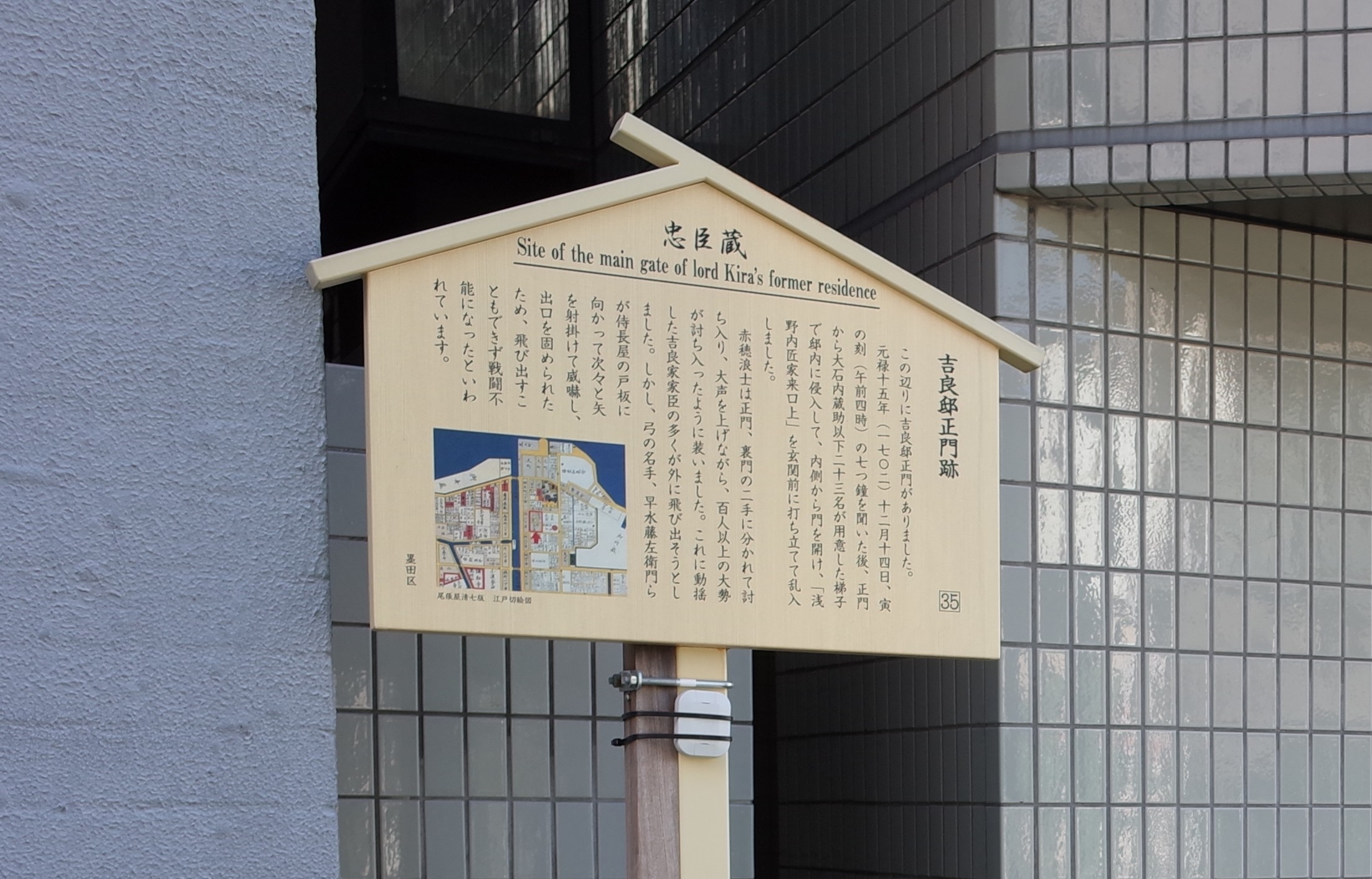 両国公園、両国小学校からすぐの場所、ビルの一角に立て看板がひっそりと建てられています。看板に当時の古地図がのっていました。もちろん、当時のものは何も残っていませんが(なくて良いです)、1702年のあの討ち入りの場所か、と思いを馳せながら見て回るのも悪くありませんでした。
