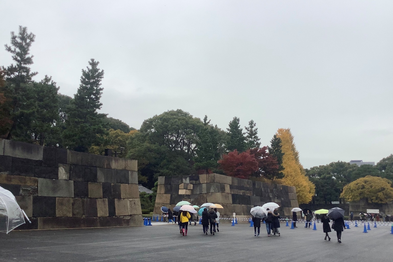 江戸城には、お濠の石垣を始めとして見応えのある石垣がたくさんありますが、見事な巨石が使われていて、1番見応えのあるのは中の門跡の石垣だと思います。もっとも、切込接ぎの石垣で見た目にはたいへん堅牢そうなのですが、何度か修復されていて現在の姿は平成時代に修復されたものだそうです。意外にも乱雑に積んだように見える野面積みの方がしっかりしているとのことでした。