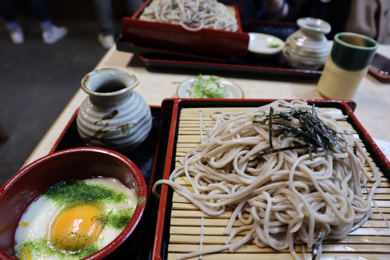 鈴虫寺に行く前にこちらで腹ごしらえしました。バス停の目の前にあります。14時ごろでしたが、まだまだ客足が絶えない様子でした。月見とろろ蕎麦を食べました。蕎麦にコシがありのどごしもよくとても美味しく頂きました。