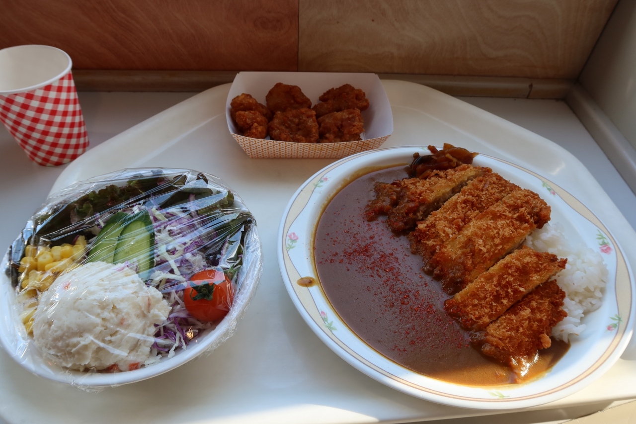 オーダしたのは、地産のルスツポークカツカレーで、唐揚げ、サラダと一緒にいただきました。