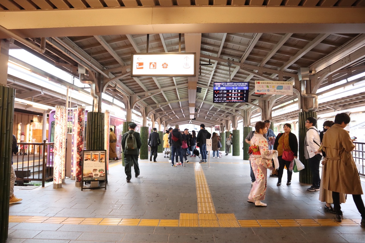 京都を観光中に嵐電に乗りました。嵐山から京都市内まで戻る際に乗りましたが時間帯にもよるのかとても混雑してましたし、観光客も多く利用するようで車内はなかなか騒がしかったです。運賃は後払いでした。路面電車に近いような感覚の可愛らしい電車です。