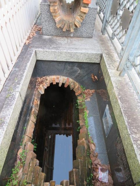 15番館の壁に張り付いて、柵に囲まれています。下水道の上の部分にれんががあって、少しおしゃれになっています。1872年ごろ造られたもので、登録有形文化財であるとともに、土木学会選奨土木遺産だそうです。昔の下水道を見学できる貴重な場所です。