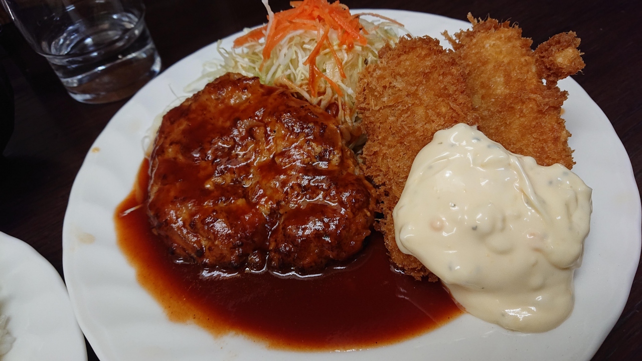 錦糸町から5-6分の場所にある洋食店でランチAというものを頂いた。ハンバーグとイカフライで750円はお安いと言えるだろう。もっとも洋食店に期待したいあの何とも言えないソースの香りは漂っておらず、メニュー豊富な定食屋といったところ。