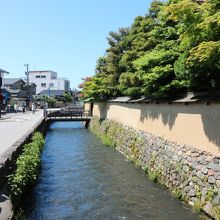 風情ある土塀沿いにはを大野庄用水が流れています。