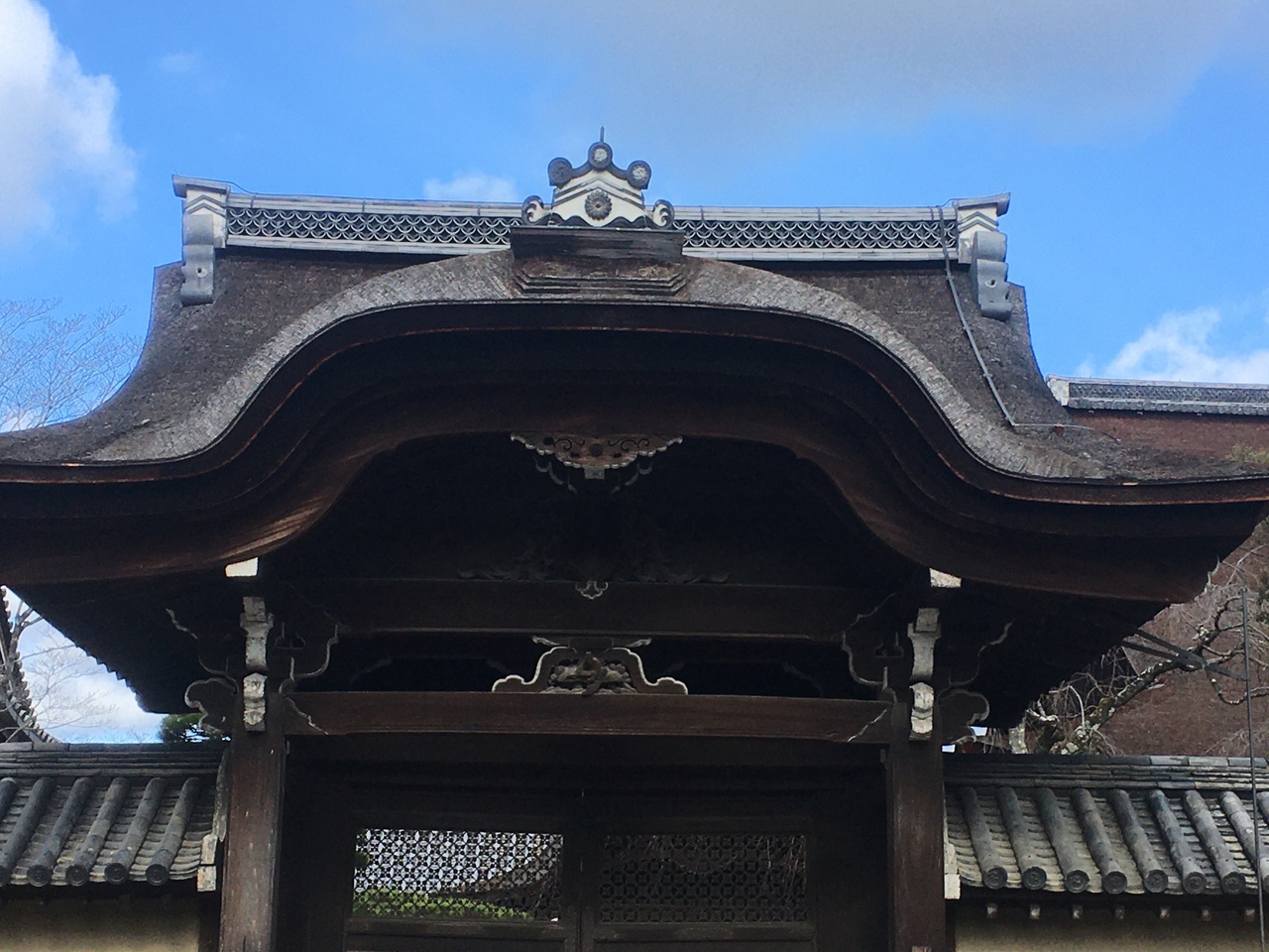 御影堂の裏?勢至堂へ登る石段の脇にあります。勅使門とも言い朝廷など正使が方丈へ入る正門です。1641年の造営。牡丹唐草や鯉に乗った老人などの彫刻が施された装飾のある門です。重要文化財に指定されています。