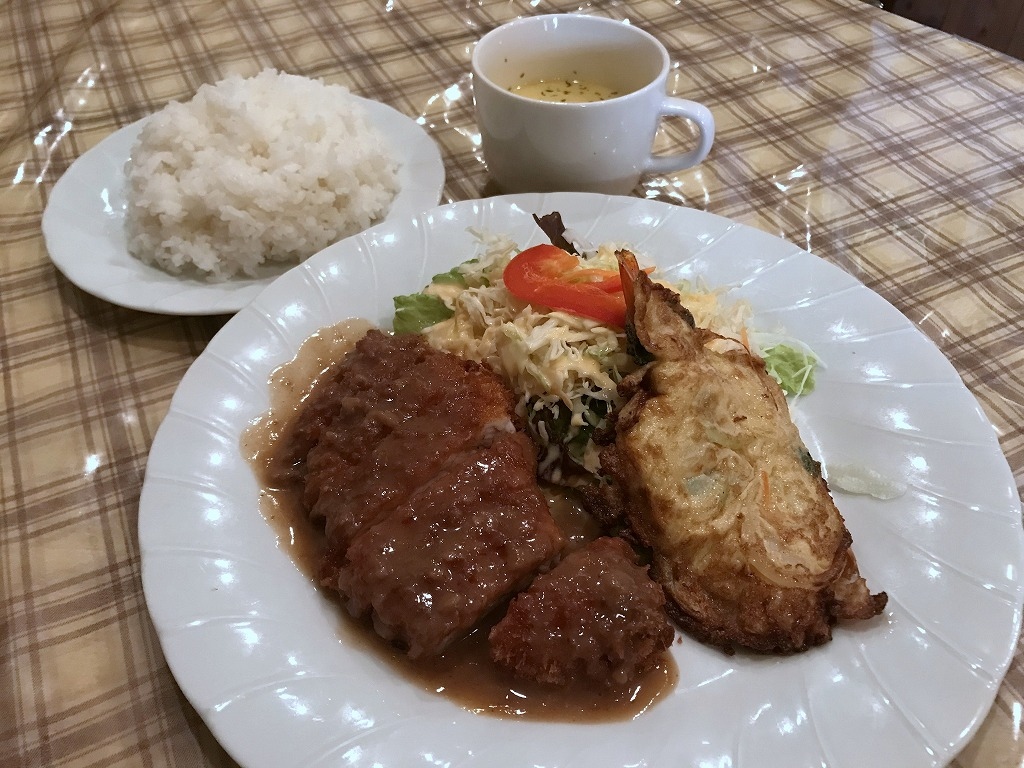 今日の日替わりは「ポークカツ」と「エビのピカタ」です。
