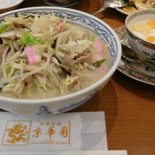 長崎新地中華街の北門すぐにあるお店です。お店の前には凛々しい姿の狛犬がいて、高級そうな感じがありましたが、店頭のメニューを見たら、割とリーズナブルな価格の単品メニューもあったので入ってみました。「ちゃんぽん」は具沢山で、とても美味しかったです。キャッシュレス還元のサービスもあったので、お得に食事が出来て良かったです。