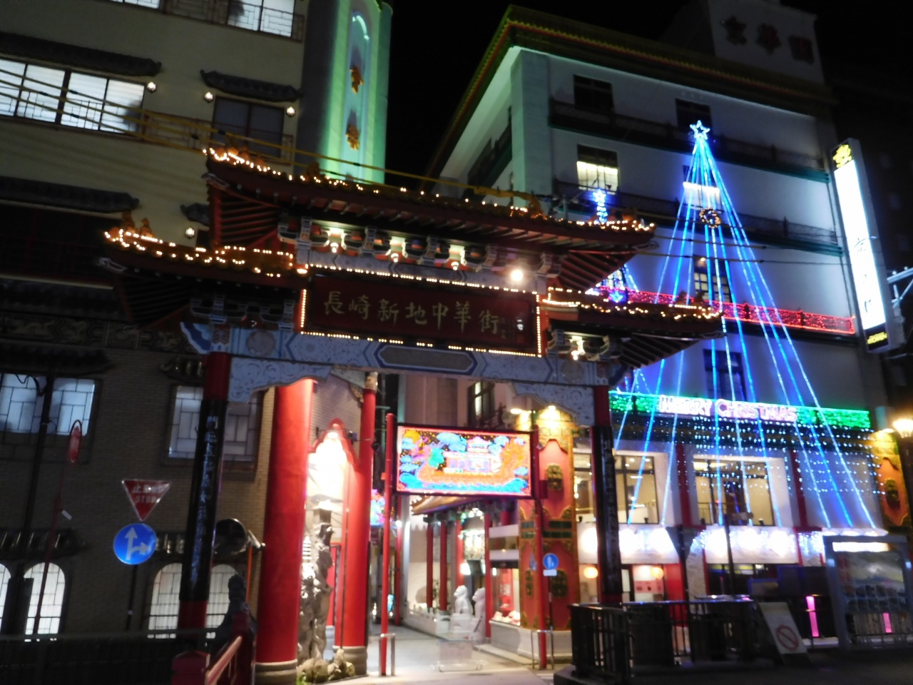 日本の「三大中華街」の一つですが、横浜や神戸と比べると、一番コンパクトな印象でした。長崎新地中華街入口近くの「京華園」に入って食事をしましたが、長崎本場の「ちゃんぽん」が食べれてとても美味しかったです。12月はイルミネーションが輝いていて、いつもより華やいだ雰囲気になっていました。