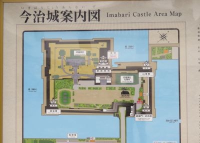 今治城は、1604年に藤堂高虎によって築城された城です。天守の存否がしばしば論じられる城で、築かれたものの亀山城に移築されたという説があるそうですが、遺構らしきものは見つかっていないそうです。亀山城の古写真をもとに、似せて造ったコンクリ天守がありますが、天守の存在が正式に確認されていないので、模擬天守の扱いになっています。残念なのは、そのコンクリ模擬天守があるのが二の丸跡で、本丸跡に神社があることでした。神社ができた後に建てたので仕方がないのかも知れませんが、城郭好きとしては、かなりがっかりします。
