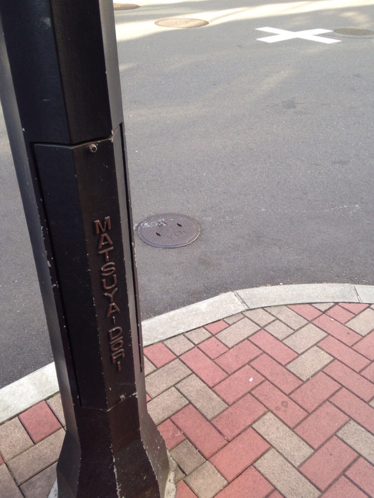 晴海通りから銀座一丁目駅方向に一本入った通りです。由来は百貨店の松屋があるからみたいですが松屋は中央通りに広く面している印象なのでイメージが湧きづらいのと、街灯に通りの名前を書いた飾りなどがないので分かりづらかったです。