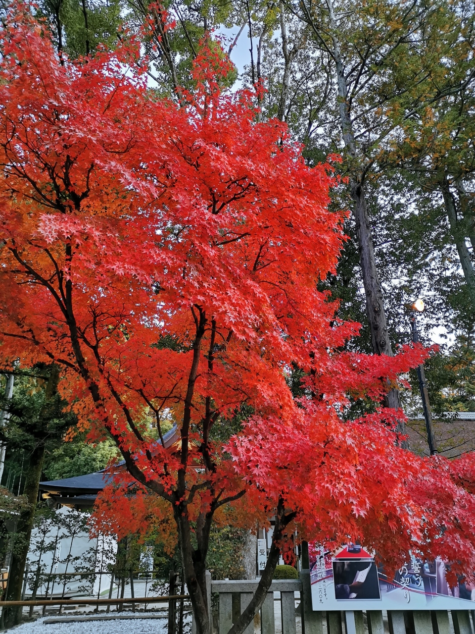 武田神社に早朝参拝しました。参拝者用の駐車場は無料。鳥居の前にあります。武田神社は武田氏3代の居城である躑躅ヶ崎館内にあります。武田神社の境内から左手に廻ると土塁、堀跡があります。うっそうとした森もあります。ちょうど紅葉シーズンで紅葉が綺麗でした。