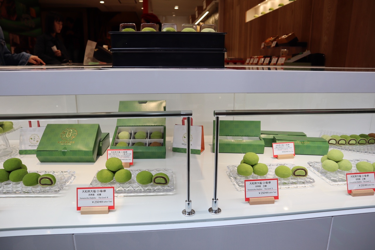 近鉄奈良駅から降りてすぐの東向商店街の中にある抹茶大福のお店です。見た目が可愛かったので購入。抹茶の濃さは5段階選べます。濃い抹茶は苦手なので下から2番目の濃さにしまさかた。私にはちょうどよいお茶の苦みで、クリームや餡の甘さとも良くマッチしていました。