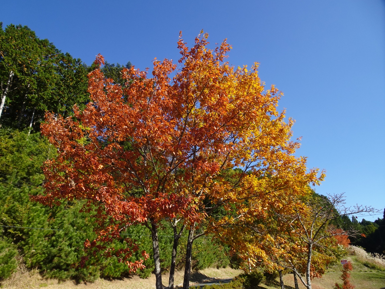 一方で小川を渡った側にも開放感溢れるスペースがあり、バーベキュー広場や手作り体験施設などが点在、こちらに足を運ぶ人はあまり多くありませんでした。標高550メートルの地点だけに紅葉がきれいで散策が楽しめます。駐車場も国道側に比べると空いていました。