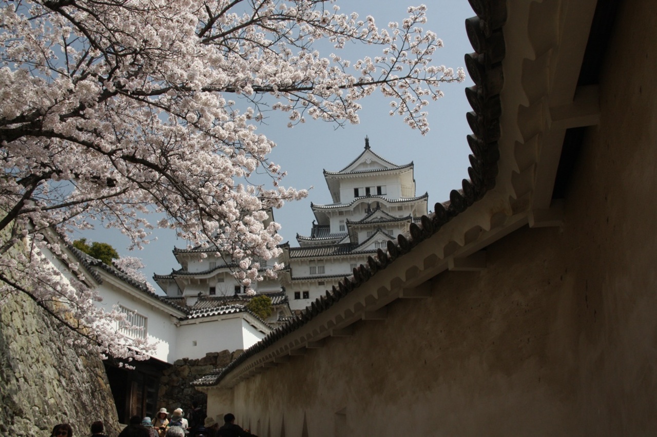 坂に沿って土壁が続き、その先に桜と天守が見える風景が圧巻です。その奥にあるのがこのはの門で、いよいよ姫路城の縄張りや、本丸への道が複雑に入り組む場所にある門であることが見て取れ、姫路城でもぜひ見ておきたい門です。内部は通り抜ける程度ではありますが、構造も非常に興味深い建造物でした。