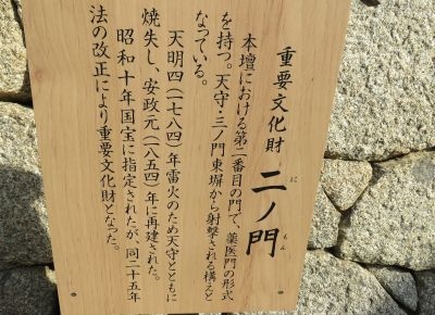 二ノ門は、松山城本丸の本壇部分にある門です。石垣と石垣との間に挟まるように建てられた薬医門で重要文化財に指定されています。長い石段の途中にあり、攻めにくそうな場所でした。しかも頭上から矢やら銃弾やら石やら猛烈に攻撃を受けそうな立地で、松山城の鉄壁さがよくわかりました。