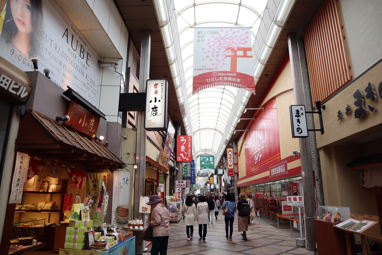 近鉄奈良駅を出るとすぐに商店街の入り口があります。奈良のお土産ものはなんでも揃っていそうな場所です。観光客で溢れていてとても活気がありました。アーケードの商店街なので雨の日でもストレスなく買い物できます。