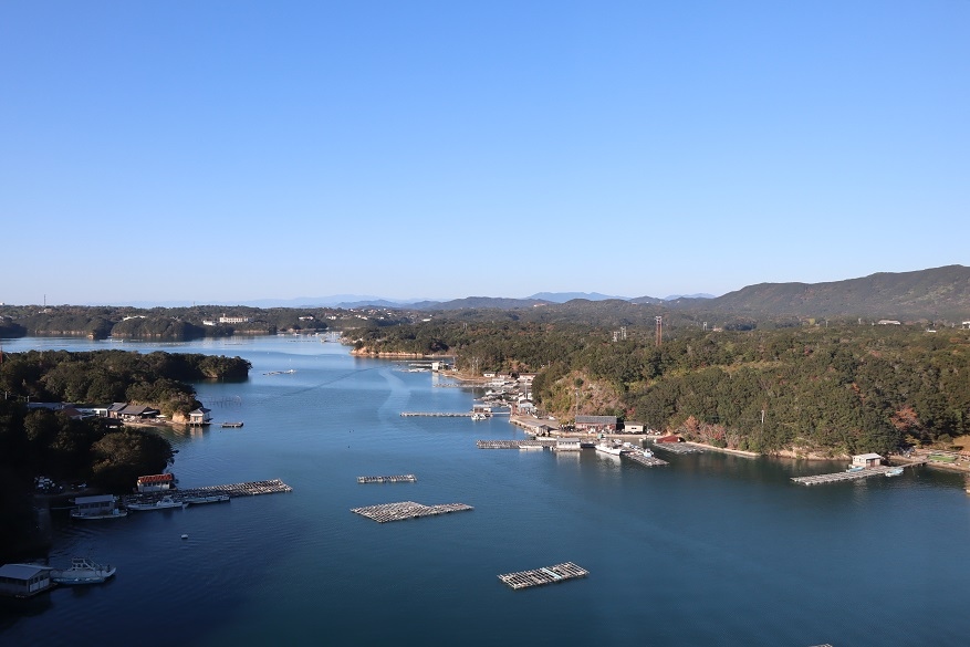 英虞湾の美しさは、点々と浮かぶ島々(くっついているのかもしれない)にあると思います。海岸やクルーズ船など、海に近づいてはこの絶景は見られません。この景色を楽しむならば上から、と思い、横山展望台へ行きました。期待通りの光景が、眼下に広がっていました。
