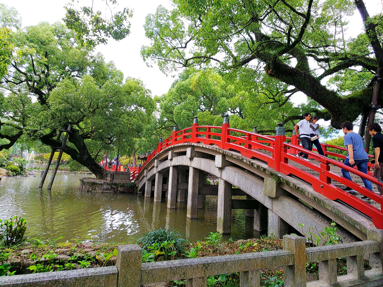 太鼓橋は3つの橋からなり、手前から「過去」・「現在」・「未来」を表しているとか。