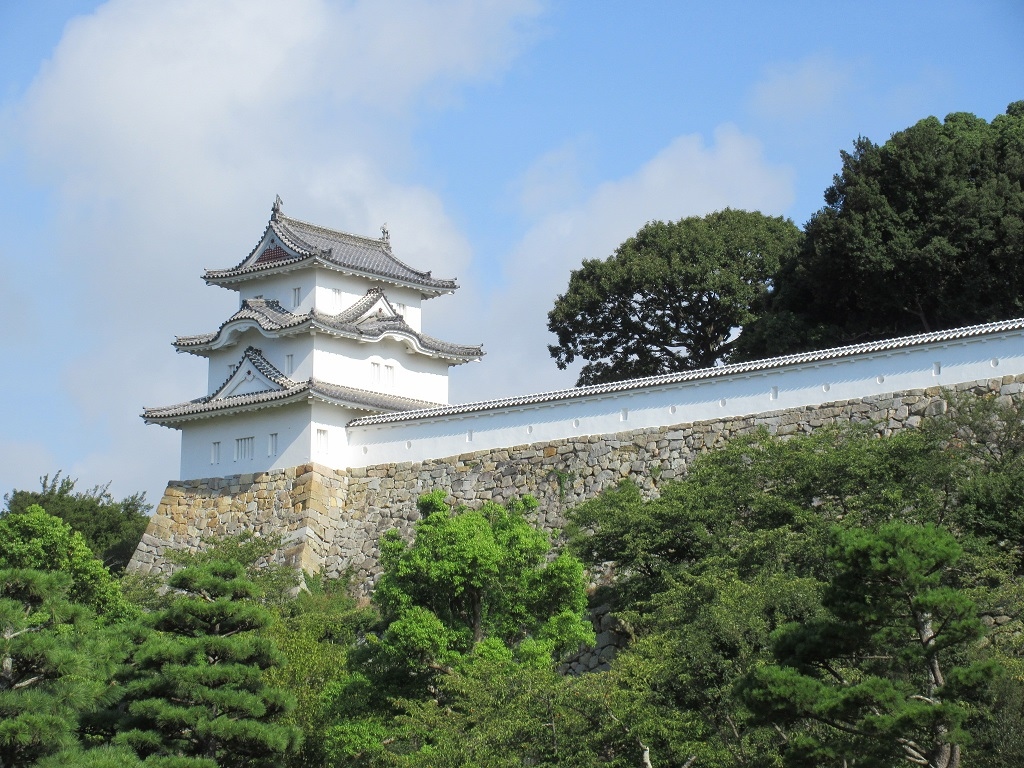 以前山陽新幹線に乗車した折、車窓から見えた明石城。今回機会があり訪問することが出ました。明石駅から北側に出るとすぐにお濠があり、左折して城内に入ると、目の前に三重の櫓が二つと、緩やかな勾配の美しい石垣が見えてきました。二つの櫓は国の重要文化財に指定されており、白亜の姿は均整がとれていて美しく感じられました。見学者も少なく、写真も思い通りに写すことが出来ました。