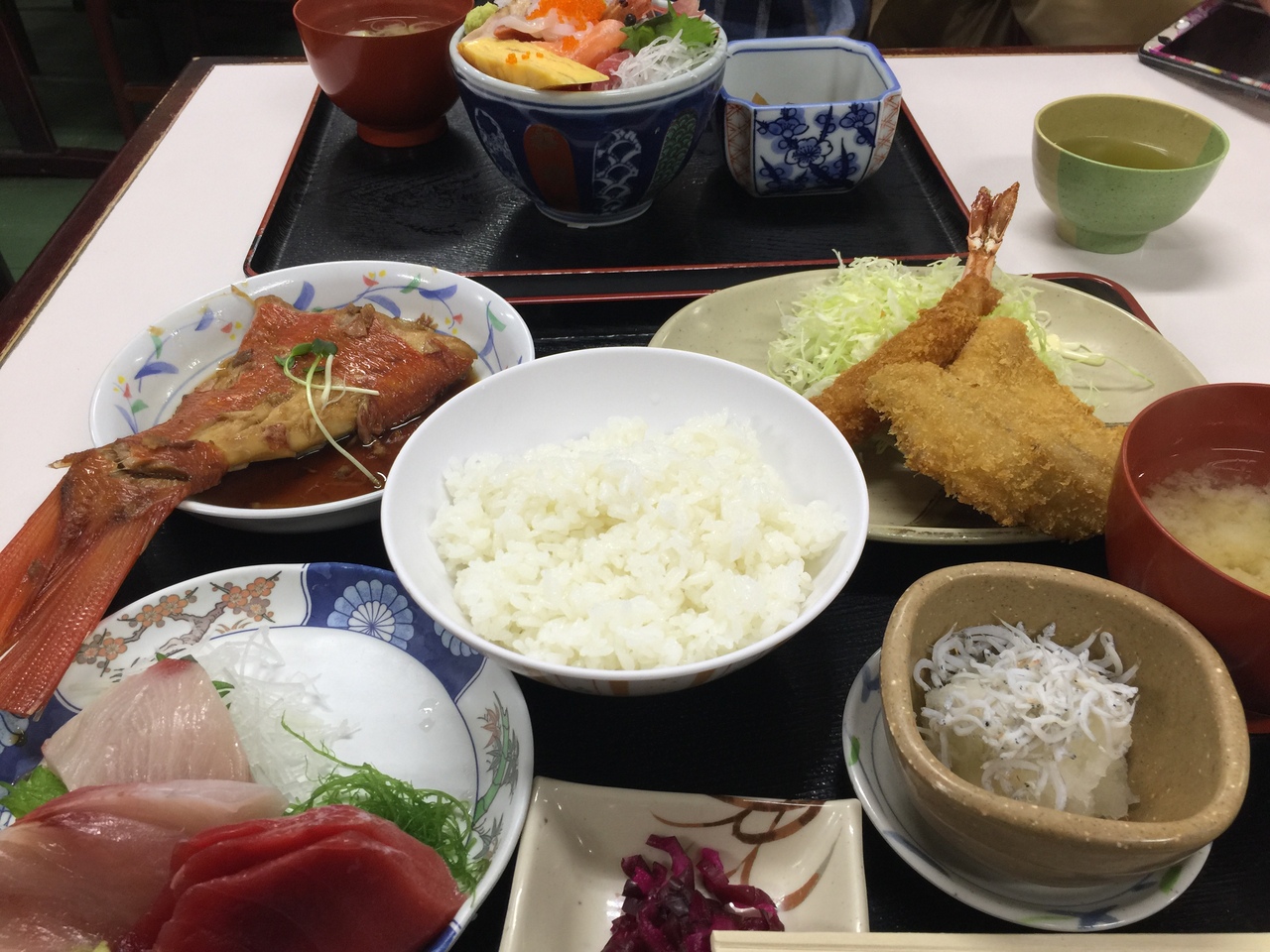 漁港内の市場2階に併設された店舗では、ボリュームたっぷりな海鮮メニューが揃い、その味とともに食欲を満たしてくれました。