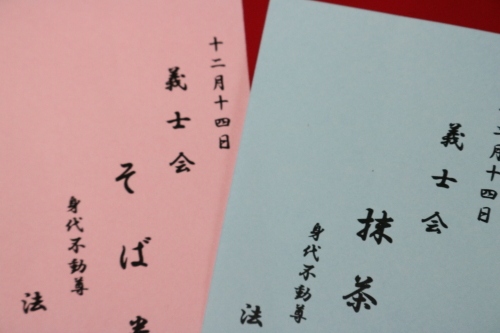 討ち入りそばとお茶席、祈願護摩木で1,500円でした。