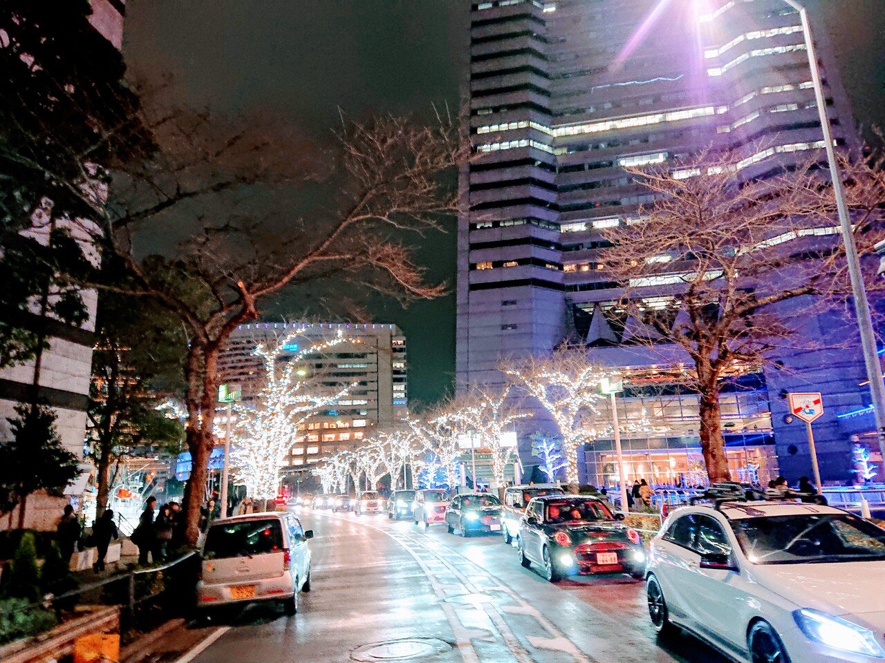日本丸のライトアップやランドマークタワーのドックヤードやグランモールのブルーのイルミネーション、コスモワールドのイルミネーションなどとあわせてイルミネーション散策にいいと思います。