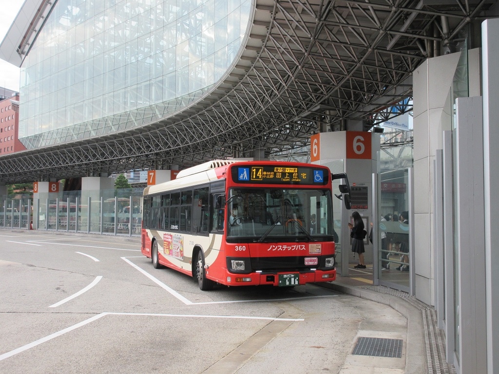 金沢駅の東口から、香林坊、兼六園、金沢城へと向かう便利が観光用のバスです。日中はほぼ20分おきに走っていて、パスを購入しておくと運転手さんに見せるだけてOKです。朝兼六園方面に向かったのですが、混雑していて座席に座ることは出来ませんでしたが、それほど長時間ではないので苦にならなかったですね。各停車場も有名スポットが目の前なので、迷うこともなかったです。