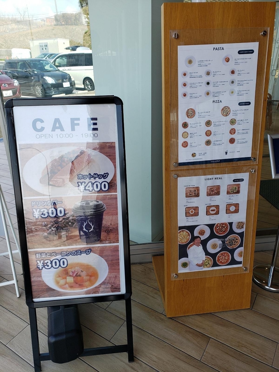 前年は改修工事中で仮設トイレがあるだけの休憩施設でしたが、2019年にはリニューアルオープンされていておしゃれなカフェレストラン、地元の名産を売っているお店、観光パンフレット置き場、綺麗なトイレなど整備されて、楽しめるサービスエリアになっていました。お土産はばらまきも本格的なものもどちらも対応出来ています。
