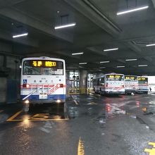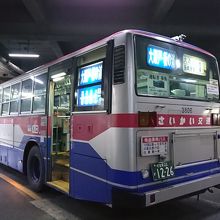 長崎バスのターミナル。建物のなかには5つのホームがあり、主に北部方面行きのバスがこちらのホームから出発します。その他のバスはターミナルの外にある停留所から発着しており、長崎空港行きのリムジンバスも外に停留所から出発。待合室は隣の長崎バスターミナルホテル内にあるので注意。核テナントのイオン長崎店(旧ダイエー)やキャンドゥなどが入っていますが、どことなく昭和の雰囲気があります。ただ、出発案内はLED使用しており、案内放送も自動など最新式のものを用いています。新地の中華街や面影橋、出島、浜町マーケットなども徒歩圏内。新地中華街電停からもすぐのところにあります。