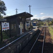 一面一線の無人駅。駅のスロープを下ると道路と踏切、ホームには簡素な待合室がある簡素な駅。飯羽間駅が最寄り駅となる「農村景観日本一」に選ばれた農村風景が広がる駅。展望台までは徒歩30分程歩がないといけないが。