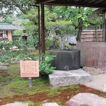 金沢の兼六園の中、瓢池近くに建つ茶室・夕顔亭の庭先に設置された二つの手水鉢のうちの一つがこちらです。円柱形をしていて表面は綺麗に磨かれていました。中国の琴の名手であった「伯牙」に関する故事が彫られてて、非常に芸術的な価値が高いもののように見受けられました。金沢の文化的な層の厚みを感じることができる一品でした。