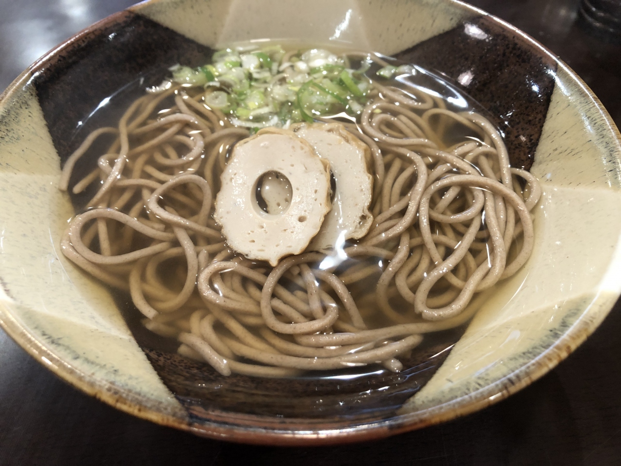 素うどん・そばだと390円です、立ち食いかと思ったらテーブル席もあるお店でした。素そばでも、ちくわが乗っています、名物の豆腐ちくわを食べれてよかったですが、普通の竹輪と変わりのないものでした。蕎麦の香が強くない柔らかめのお蕎麦で美味しかったです。