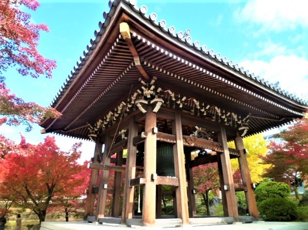 紅葉は金堂/鐘楼堂がひときわ目立ちました;モミジ/カエデ/イチョウは各色を発揮…境内の樹木は赤色/橙色/黄色が真っ盛りで紅葉だったですよ♪ 観光客もそれほどではないので隠れたスポットでした。