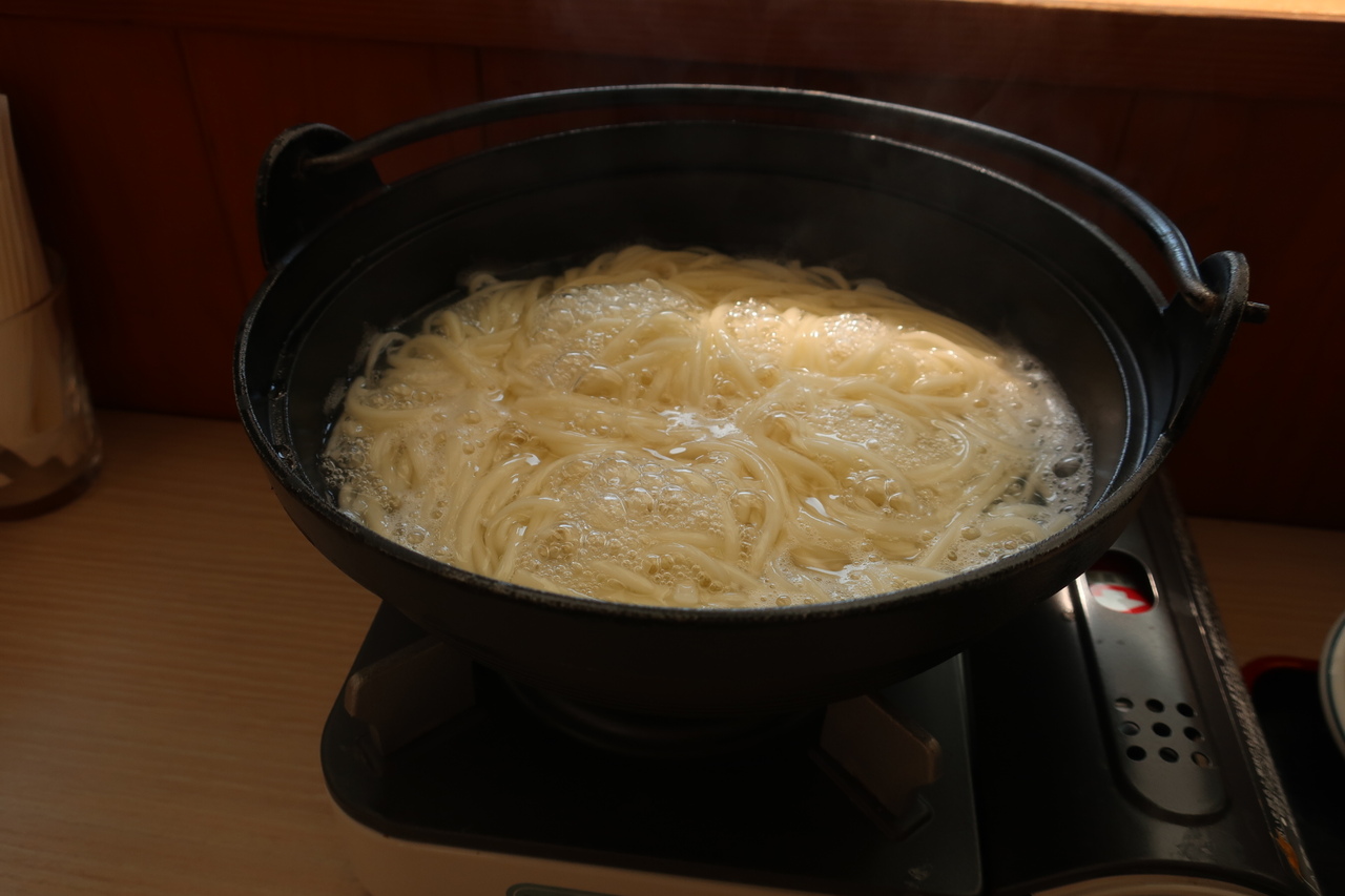 五島うどんを鉄鍋でグラグラと