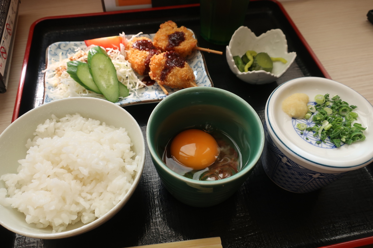 地獄炊き定食とクジラ肉の串カツを