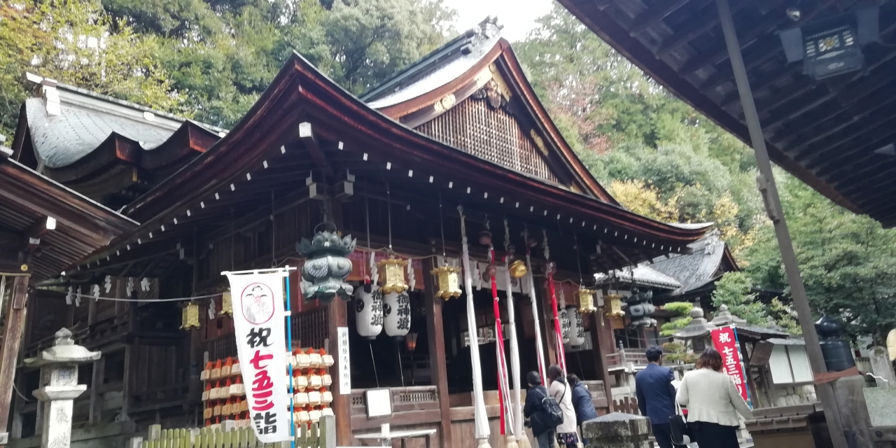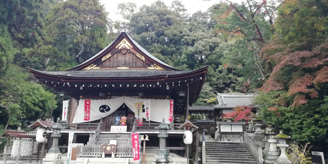 近江八幡市立資料館を見学後、日牟禮八幡宮に参拝しました。新町のバス通りを進むとヴォーリズ像やメンタムの近江兄弟社があり程なく左手に大鳥居があります。鳥居をくぐり八幡掘にかかる白雲橋を渡ります。境内は広大です。エノキやムクの樹が生い茂ります。右手に現れる風格ある楼門をくぐると正面に立派な拝殿があります。高い木立を背に神聖さを感じます。拝殿脇の石段を上ると本殿があります。厳かで立派な本殿です。近くにある二羽のハトの金の像が印象的です。社務所前に満開の菊の鉢があり見事でした。誉田別尊(ほんたわけのみこと)・息長足姫尊(おきながたらしひめのみこと)・比売神(ひめかみ)の三神を祭神とする旧八幡町の総社で平安時代の創建といわれる神社は七五三詣も含め参拝客で賑わっていました。