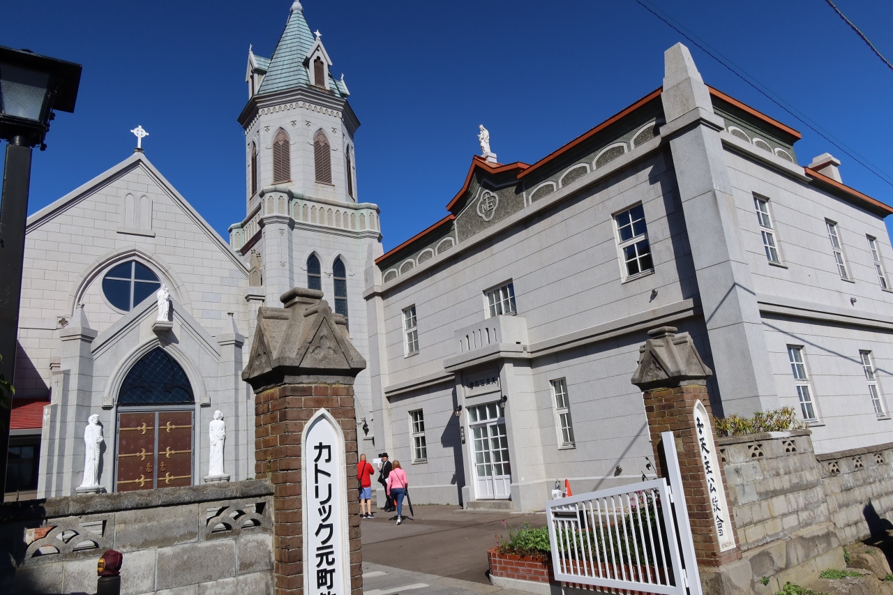 元町函館ハリストス正教会の下側にあるゴシック様式の教会がカトリック元町教会です。1859年創建され、今の教会はは1923年に再建されたものです。内部は無料で見学できるのですが、生憎日曜礼拝の時間で内部は見学できず。日曜日は避けた方が良いでしょう。