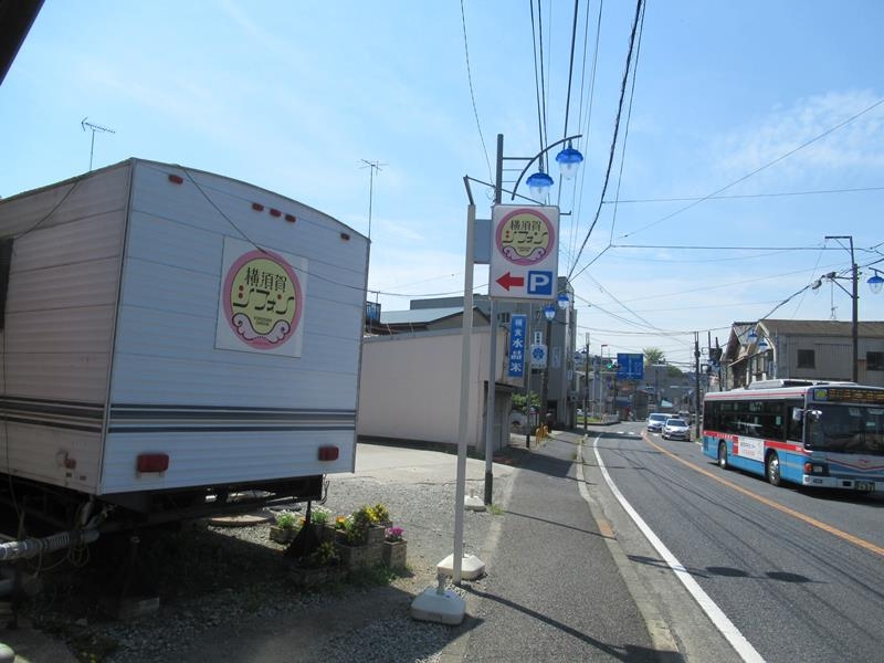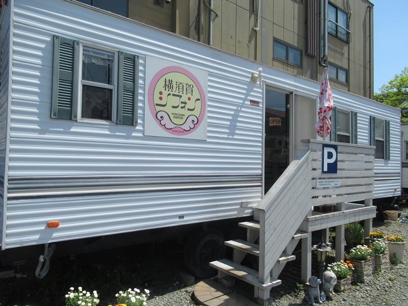 JR横須賀線衣笠駅から徒歩10分。京急バス曹源寺バス停からすぐの場所にあるトレーラーハウスのシフォンケーキ専門店です。