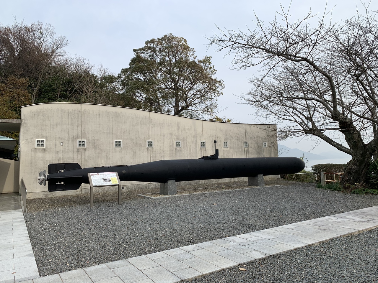 丘の上にある記念館には、回天のレプリカや内装がわかる展示、特攻隊員の遺書などが飾ってあります。二十歳半ばで散っていった若者の気持ちが伝わって来ました。平日でしたので電気が消えてましたが、中に入ったらスタッフが出てきてくれました。館内の展示物の撮影は禁止です。