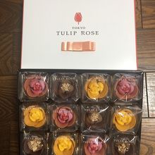 前回の購入から一週間後に再度チューリップローズを買いに行きました。今度はチューリップローズ12個入りを購入。次々に新作が出ているようですが、やはり最初に遭遇したチューリップローズの見た目の可愛さと、その可愛さに負けない美味しさに魅かれます。友達仲間でお披露目して大好評でした。