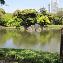 琵琶湖を表現したといわれる大泉水に浮かぶ蓬莱島。