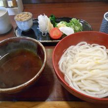 うどんを注文しましたが、きんぴらやお浸しなどが別皿にきれいに盛られてついてきます。別皿の野菜をつゆに入れてうどんをいただくと教えてもらいました。ごまもたっぷりかけました。おいしかったです。なぜか食べた時はそれほど量が多いと思わなかったのに、おなかがかなりいっぱいになりました。