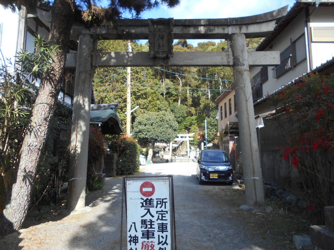 銀閣寺の参道を歩き終わり、ふと横を見ると、少し歩いたところに大きな鳥居があるのに気が付きました。せっかくなので寄り道してみました。山の麓で石段があります。