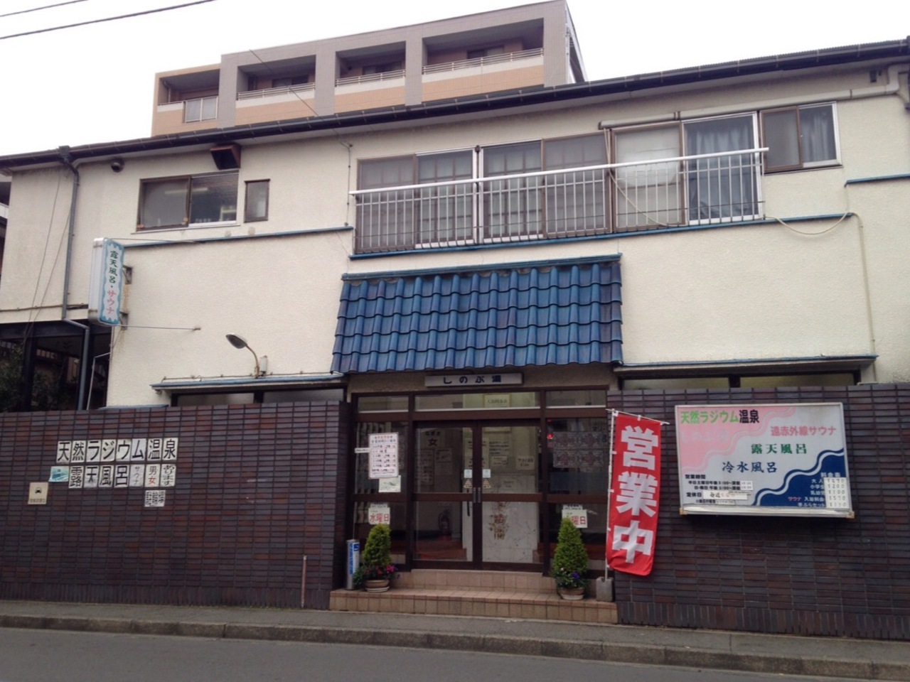 大綱中学校から帰宅する生徒の流れに乗って歩いていると道路に面していきなり現れました。ただの銭湯ではなく天然ラジウム温泉で露天風呂もあるとのことで訪れる価値がありますね。隣駅の綱島はわりと温泉で有名ですが大倉山にも温泉がありました!