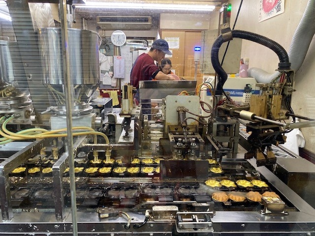 昭和初期に宮島を訪れた皇族のリクエストで、当時の店主がつぶあんのもみじ饅頭を作ったという、つぶもみじの発祥の店だそうです。早いときには午前中でつぶもみじが完売してしまうこともあるようです。いつも行列ができています。つぶもこしも、出来立ては格別においしいです。