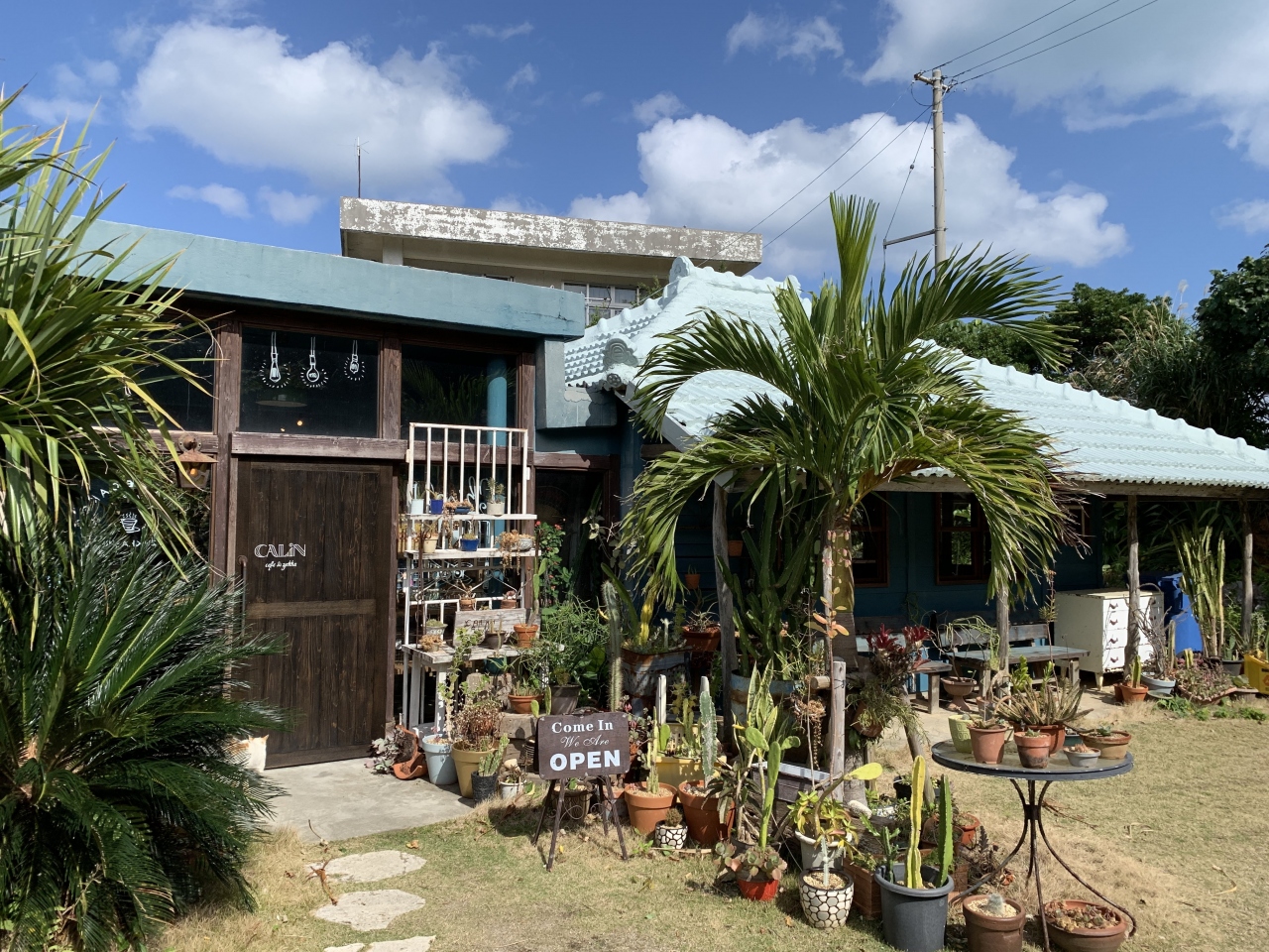 古宇利島に行く途中に立ち寄りました。古宇利島の手前の屋我地島にあり、県道から脇道に少し入ったところにお店があり、駐車場もあります。外観は個性的な店構えで、店内もその雰囲気が続いています。非日常感を感じるのにぴったりなお店でした。